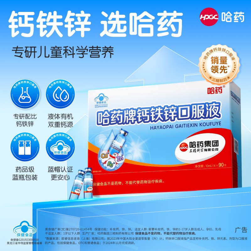 哈药钙铁锌口服液的配方优势远不止于此。作为拥有37年深厚积淀的民族品牌,哈药始终以制药级标准打造营养品。产品不仅实现了钙、铁、锌三元科学同补,更做到了“五零添加”——0添加塑化剂、0防腐剂、0色素、0重金属、0增稠剂。其标志性的“小蓝瓶”更是由哈药集团自主生产,执行严苛的国家药品包装标准,从源头保障安全。这种对纯净与科学的极致追求,正是其能够连续两年蝉联全国销量榜首的核心竞争力。它不仅是一瓶营养液,更是哈药以专业和匠心,为中国儿童健康成长筑起的一道坚实防线。