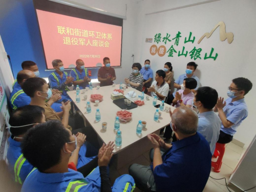 联和街道一直以来对一线环卫退役军人的工作情况和生活状况充满了殷切关怀。因此,在临近八一建军节之际,联和街四级调研员谭培基组织综合发展中心环卫口退役军人召开八一建军节座谈会,本次座谈会邀请了街道退役军人服务站站长罗姗同志参加。