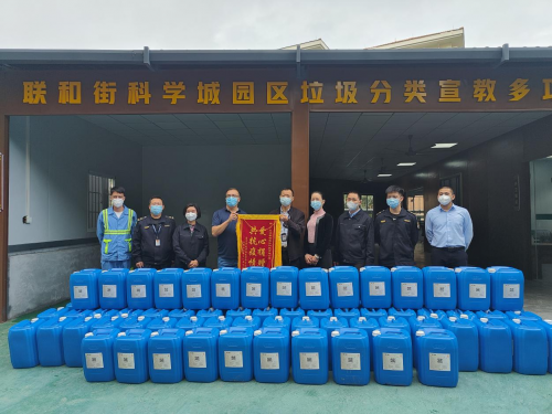 面对疫情防控的严峻形势,11月7日,广州净朗源环保科技有限公司给综合发展中心环卫工作捐赠次氯酸消毒液80桶,该公司相关负责人表示:“现在是特殊时期,看到一线的你们没日没夜的坚守在一线,希望能够为疫情防控工作尽一点绵薄之力。”