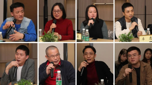图:参展艺术家郭楚开、彭剑英、陈思米、卓愿、沈建荣、谢贵彬、庄晓俊、陈冠东作了交流发言