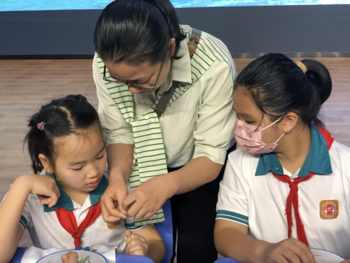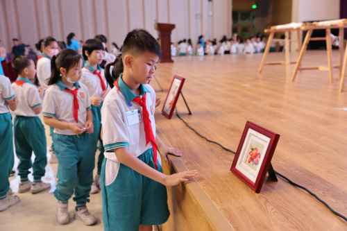 图:学生代表体验广绣技艺