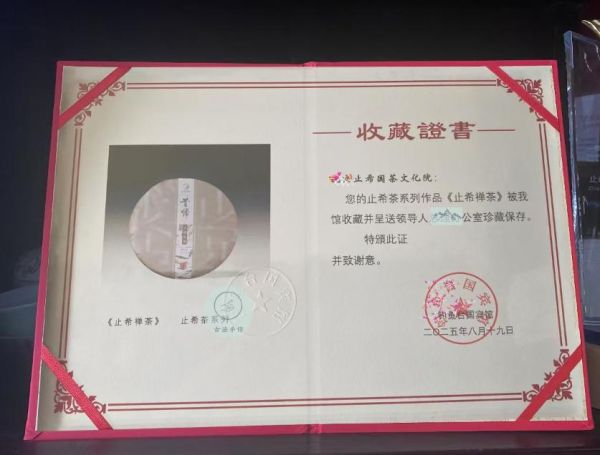 2025年,对于止希茶叶有限公司来说,是收获满满、荣耀加身的一年。这一年,《止希禅茶》被中共中央对外联络部收藏,这不仅是对止希禅茶品质的高度认可,更是对中国茶文化的肯定和推广,彰显了中国茶文化在国际舞台上的重要地位。中共中央对外联络部作为中国对外交流的重要部门,其收藏止希禅茶,意味着止希禅茶成为了中国文化的代表之一,将向世界展示中国茶文化的独特魅力。