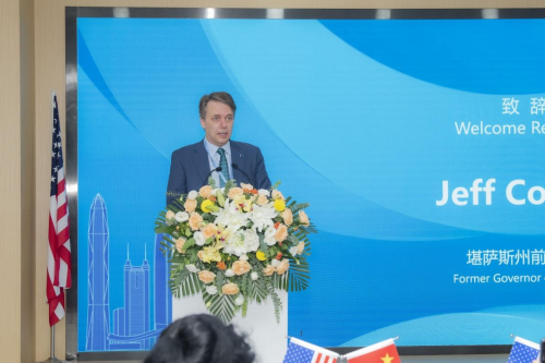 (图为美国堪萨斯州前州长Jeff Colyer在平台国际经贸活动上致辞)
