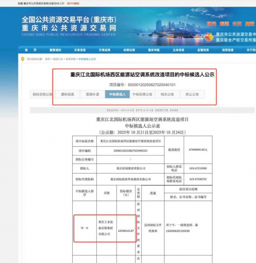 2025年10月21日,重庆机场集团有限公司(以下简称“机场集团”)公布了重庆江北国际机场西区能源站空调系统改造项目的中标候选人,其中第一名—重庆工业设备安装集团有限公司竟然是一位失信被执行人!这一出乎意料的事件瞬间在社会和行业内引起了轩然大波,招标公正性和法律执行力面临前所未有的质疑!舆论更是爆发性关注:如此明显的失信信息,为何在多重审核中被“忽视”?是否存在内部暗箱操作、利益输送或人为干预?这一切,已成为公众强烈追问的焦点。
